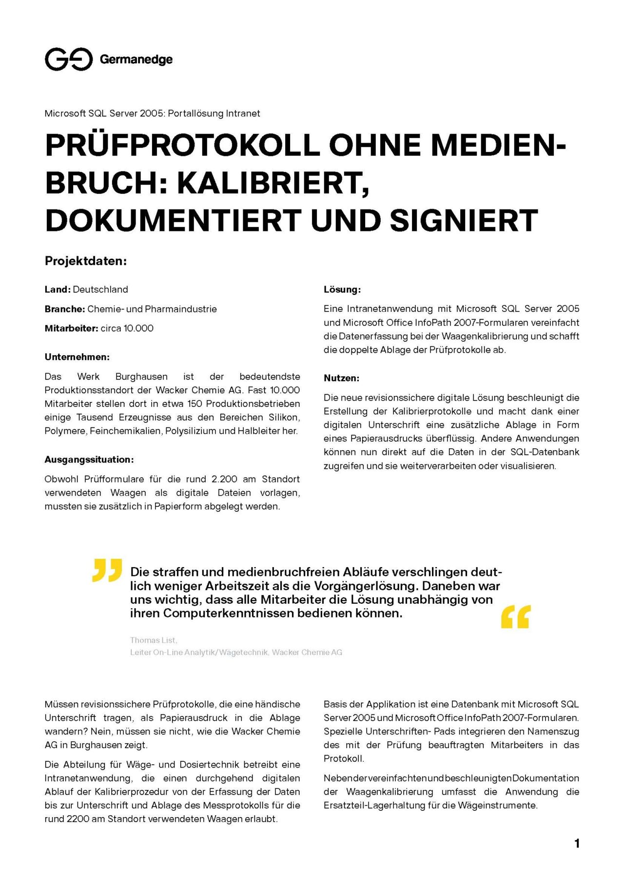 Thomas List, Leiter On-Line Analytik/Wägetechnik – Wacker Chemie AG
